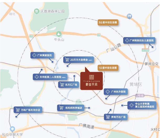 项目周边5公里范围内汇聚5所医院,其中中山大学附属第三医院岭南医院、广东省第二中医院黄埔医院均为三级甲等综合医院,提供高水平的急诊、专科及康养服务。此外,区域内还有多家社区卫生服务中心和专科诊所,构建起“基层+三甲”双重医疗防护网。尤其对于有老人、幼儿的家庭,优质医疗资源的近距离覆盖,是衡量居住安全与生活质量的重要指标。在突发健康事件频发的当下,这种“家门口的安心感”显得尤为珍贵。