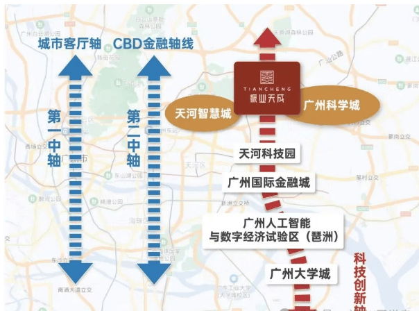 振业天成落子于广州第三发展主轴——“科技创新轴”的核心腹地,精准卡位天河智慧城与黄埔科学城两大国家级战略高地之间。这条北起中新广州知识城、南至大学城的创新走廊,正以人工智能、数字经济、智能制造等高精尖产业为引擎,未来承载GDP有望突破万亿元,成为驱动广州经济的新心脏。项目所在的黄陂板块,虽行政归属黄埔,却紧贴天河边界,既能享受天河成熟配套的辐射,又享有显著的价格洼地优势。尤其在天河住宅均价已站上7万+/㎡的当下,黄陂板块凭借宜居属性和价差红利,正成为大量改善型家庭的首选承接区。这种“近芯不进芯”的区位策略,既规避了核心区高密度带来的居住压力,又牢牢锁定了区域价值跃升的确定性。