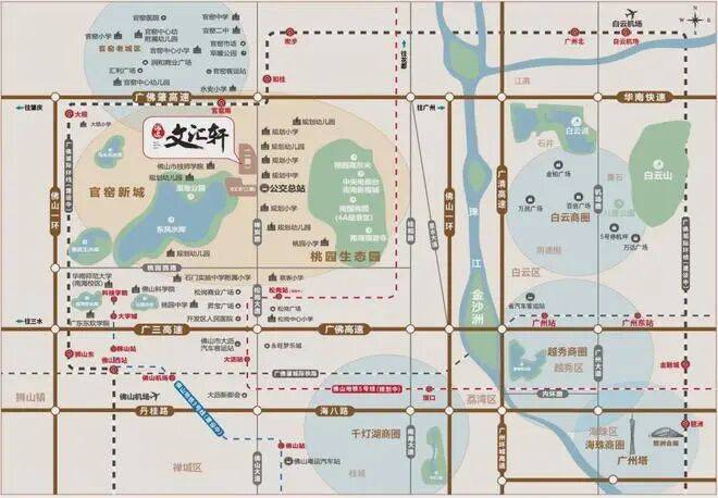海逸·文汇轩位于佛山市南海区狮山镇官窑板块,地处广佛北区核心节点。项目紧邻广佛肇高速,经华南快速路约20分钟即可抵达广州白云主城区,有效避开广三高速拥堵路段,实现高效双城通勤。