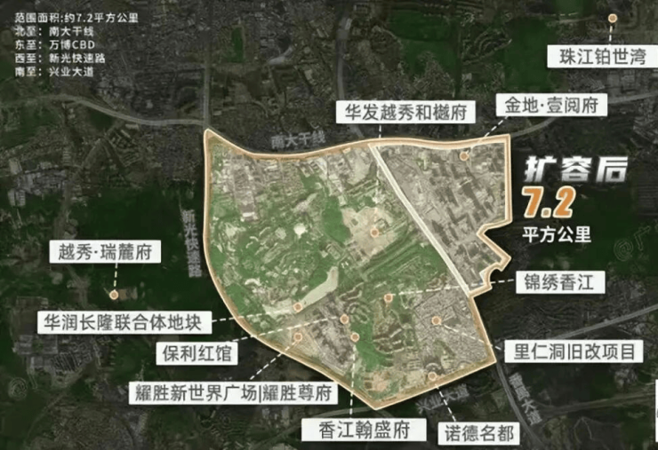 包含万博、汉溪长隆以及里仁洞板块扩容近5倍,并被以“广州南CBD”名义向全球推介!