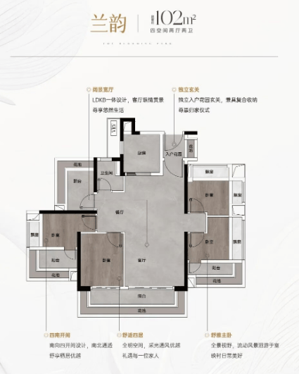 建面约102-128平南向三至四房:户型设计注重私密性和舒适度,所有户型均为单边位设计,确保每个家庭都能享受到充足的阳光和良好的视野。