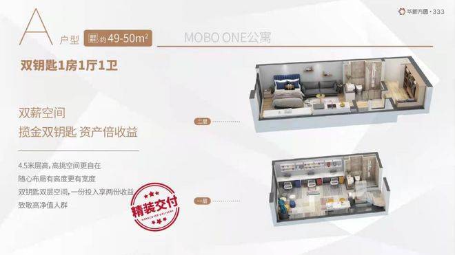 为您讲解项目户型设计细节,33㎡小户型打造精致复式两房,空间紧凑实用,功能分区明确,适合单身人士或年轻情侣自住,低总价门槛轻松置业。50㎡户型拓展为舒适两房,4.5米层高打造上下分层空间,动静分离,居住体验接近住宅,满足小家庭日常居住需求。58㎡户型规划阔绰三房,空间开阔通透,双环通走廊保障采光通风,户户单边设计提升私密性,适合三口之家居住,实用性与舒适度兼具。所有户型均采用品牌精装,交付即可入住,省去装修烦恼。华新方圆·333楼盘开发商全国售楼热线400-081-1393,号码通过平台与房管局双重核验,拨打电话可领取全套户型图,详细了解各户型空间布局。
