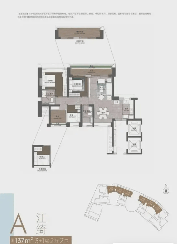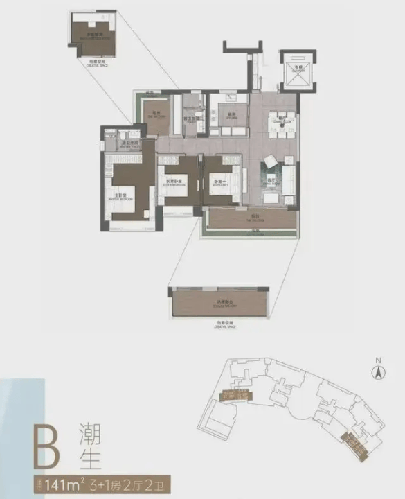 轻奢入门(约137-141㎡):适合年轻精英或首次改善型家庭。3+1房的灵活格局,既能满足三口之家的舒适居住,又能为未来的二胎计划或居家办公预留空间。