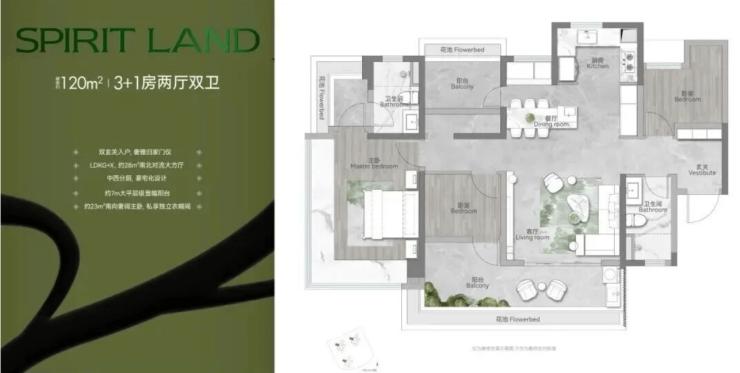 (三)建面120㎡四房两厅两卫:舒适四房,功能性与舒适度兼具