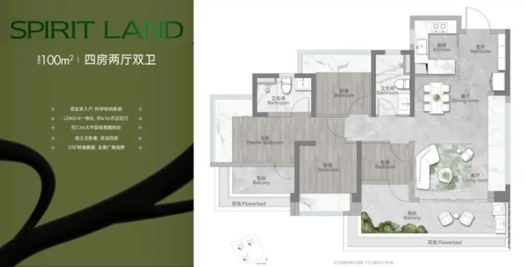 (二)建面100㎡四房两厅两卫:百平内正四房,多孩家庭的福音