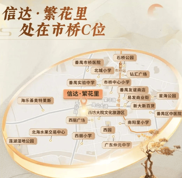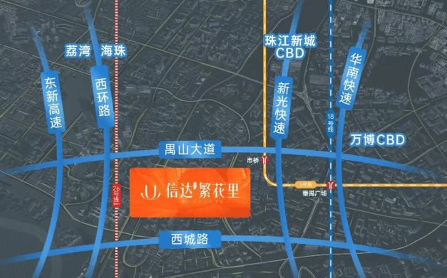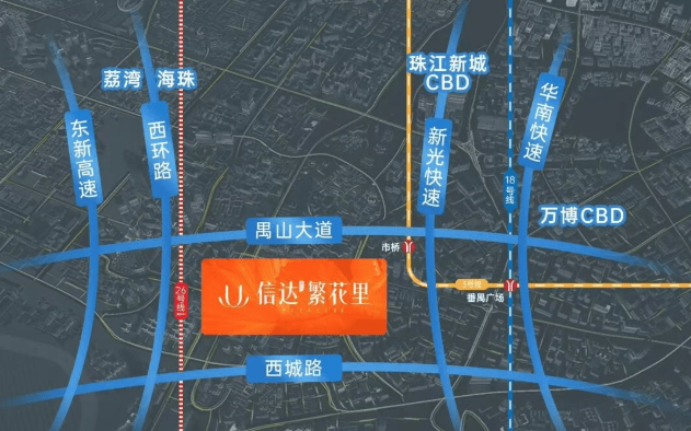信达·繁花里地处市桥城区,周边教育和商业氛围浓厚,距离市桥地铁站步行仅需约1.7公里。根据广州第四期地铁规划环评,与3号线平行的26号线有望在禺山大道和西环路交界处设站,这意味着未来项目将成为地铁上盖物业,进一步提升区域交通便捷性。