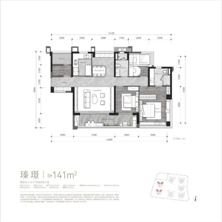 141㎡四房:四开间朝南,8.2米景观阳台,270°环幕采光;
