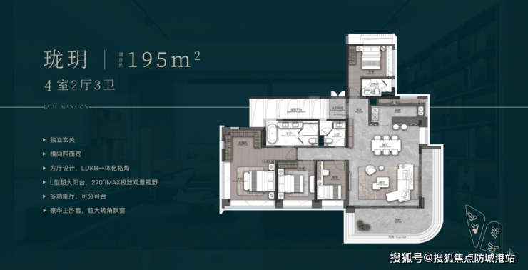 项目规划4栋超高层住宅(29-30层),主推建面约120㎡四房两厅两卫、143㎡四房两厅三卫、195㎡五房两厅三卫,均采用“LDKB一体化”设计,客厅开间最大达7.2米,主卧配备270°环幕飘窗。