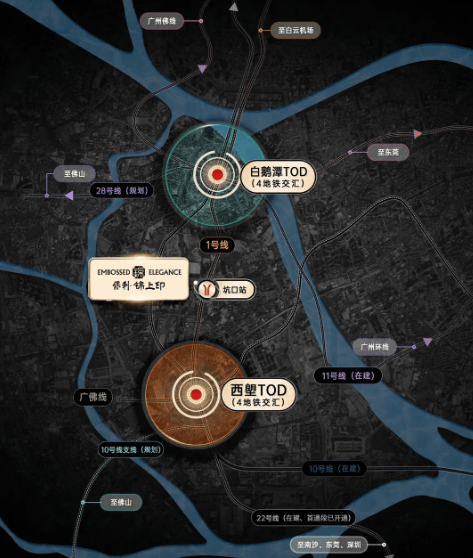 保利臻誉位于白鹅潭CBD的核心区域,距离1号线坑口站仅850米,步行即可到达,交通便利。此外,周边还有多条快速路网,方便居民前往城市各个角落。项目靠近如意坊放射线系统工程二期(建设中),建成后将实现快速连通内环,进一步提升出行便捷性。