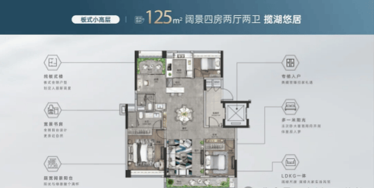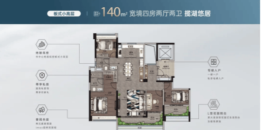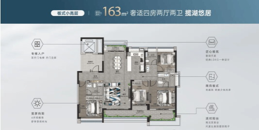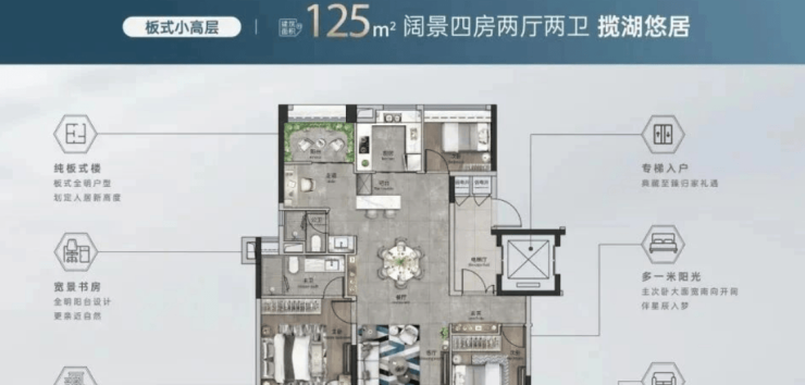 小高层产品以低密度、纯板式设计为主,全南向布局,专梯入户,享有良好的通风采光条件。