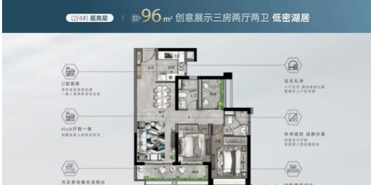 超高层产品同样注重空间利用率和居住舒适度,部分户型可享受一线湖山景观。
