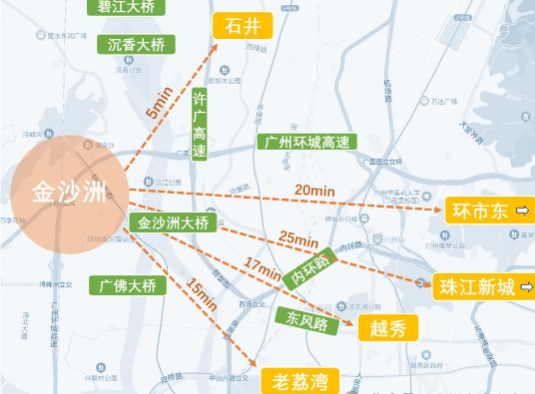 越秀天悦金沙坐落于白云区金沙洲板块,北接佛山里水,南邻广州主城,是广佛同城化战略的核心节点。根据《广州市2025年城市更新规划》,金沙洲将投入超200亿元打造“生态宜居新城”,未来3年新增10所学校、3个商业综合体及2条地铁延伸线(12号线浔峰岗站已通车,规划29号线直达珠江新城)。