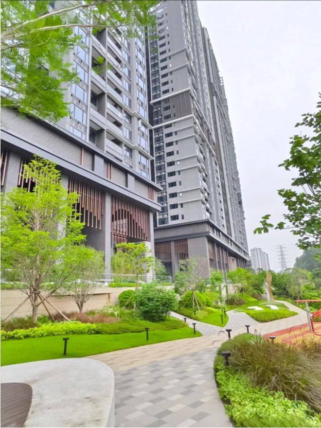 在园林设计上,项目秉持“生态优先、全龄乐享”的理念,在家门口配建有约3万方的社区大园林,将自然生态与社区生活完美融合,让业主在繁华都市中也能享受自然的静谧与惬意。园林设计采用多层次景观布局,种植了多种适宜广州气候的绿植,搭配景观步道、休闲平台、健身区域、儿童游乐区、康养空间等元素,打造出“一步一景、四季有景”的生态园林环境,既美化了社区环境,又能净化空气、调节气候,为业主打造一个健康、宜居的生活空间。同时,园林内设置了多个功能区域,适配不同年龄段业主的休闲需求,真正实现“全龄化乐享天地”——针对儿童,打造了专属的儿童游乐场,配备安全、有趣的游乐设施,让孩子在社区内就能尽情玩耍、快乐成长;针对老人,设置了康养休闲空间,配备休闲座椅、健身器材,方便老人散步、健身、邻里交流,安享晚年生活;针对年轻人,规划了运动休闲区域,满足年轻人日常健身、休闲放松的需求,让每一位业主都能在社区内找到属于自己的休闲空间,享受舒适的居住体验。