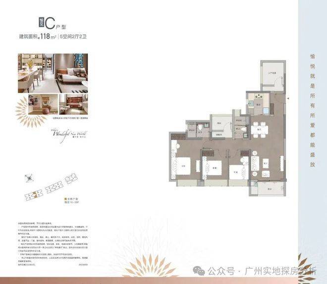 建面约118-132㎡平层户型,是改善型家庭的优选,主打空间宽敞、舒适度高,适配多人口家庭的居住需求。该户型最大的优势是南北双向无遮挡,空间通透,部分高层单元可俯瞰长隆旅游度假区盛景、万博商圈城市景观,视野开阔,采光充足。户型方正通透,功能分区明确,动静分离,客厅宽敞大气,连接宽景阳台,既能满足日常休闲需求,又能欣赏窗外美景;餐厅与厨房相连,方便用餐和收拾,适配广州家庭的烹饪习惯;主卧采用奢阔套房设计,配备独立卫生间和衣帽间,彰显主人的尊贵感和私密性,让业主能够享受专属的舒适空间;其他卧室尺寸宽敞,均能满足日常居住需求,可根据家庭需求打造为儿童房、老人房、书房等,灵活多变,实用性极强。同时,该户型得房率高达88%,空间利用率极高,避免了空间浪费,让每一寸空间都能得到充分利用,既能满足多人口家庭的居住需求,又不会显得拥挤,适合追求居住品质、人口较多的改善型家庭。