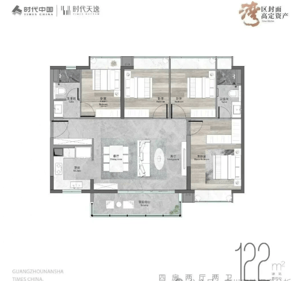 项目由时代中国倾力打造,作为中国房地产百强企业,时代始终以高标准把控建筑质量与精工细节。全屋采用高品质精装交付,从选材到工艺均经过严格品控,兼顾实用性与审美感。户型设计方正通透,动静分区合理,全飘窗设计最大化引入自然采光与通风,营造健康舒适的居住环境。