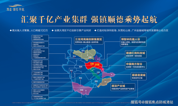 凯蓝锦伦华庭坐落于顺德伦教核心区域,隶属于顺德东部新城北部居住区,地处桂畔海北岸,是政府斥资300亿打造的顺德东部新城核心板块,片区总规划648.08公顷,将打造成“一心两廊三带七片区”的空间结构,成为顺德新城门户、顺德高品质生态居住示范区,发展潜力巨大。