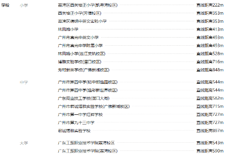 项目对口入读西关培正小学芳信校区,该学校隶属于西关培正教育集团,拥有省一级办学资质,依托西关培正百年办学底蕴,实现优质教育资源共享,师资力量雄厚、教学设施完善。同时项目配建6班公立幼儿园,3公里内有广州四中、广雅、真光等省一级中学,构建全龄段教育体系。