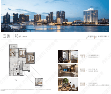 新世界天馥精准洞察不同置业群体的居住需求,打造建面约76-137㎡全周期户型产品矩阵,涵盖三房、四房多种户型,分别命名为“沁境”“云境”“宸境”“悦境”“臻境”“逸境”,以科学的空间布局、充足的采光通风、人性化的细节设计,满足单身青年、新婚家庭、多代同堂等不同群体的居住需求,其中建面约78㎡江景三房与88㎡纯南三房作为项目的主力爆款户型,凭借高性价比与实用性,成为市场关注的焦点。建面约78㎡“云境”江景三房,总价308万起,是刚需上车的优选户型,户型设计紧凑实用,布局科学合理,最大化利用每一寸空间,同时享有一线江景视野,让刚需家庭也能享受江景人居的惬意。该户型南北通透,采光通风极佳,客厅与卧室布局合理,动静分区清晰,既能满足日常居住需求,又能保证居住的私密性,厨房与卫生间设计人性化,操作便捷,适配刚需家庭的日常生活习惯。建面约88㎡“宸境”纯南三房双卫,总价340万起,主打全南向设计,约11米南向面宽,客厅及三间卧室全部朝南,是市场中少见的偏宠首次上车族的户型,且该户型可视家庭居住需求灵活调整空间,可合并为两房或间隔为三房,适配家庭不同阶段的居住需求。此外,项目还有建面约98㎡“悦境”园景四房(378万起)、137㎡“逸境”江景大平层(498万起)可供选择,其中137㎡江景大平层采用独门独户设计,约15米采光面、南北对流,打造媲美豪宅的大宅格局,是改善之家一步到位的优选,三代同堂或二孩家庭也能各有舒适空间。所有户型均延续新世界香港开发商的精致设计风格,人性化细节随处可见,搭配豪宅级精装配置,进一步提升居住舒适度与品质感。