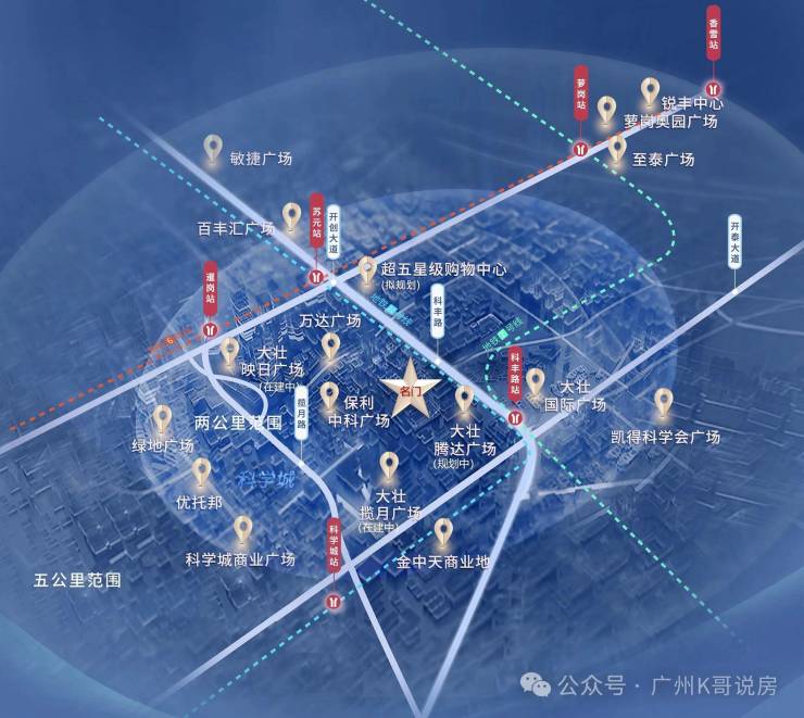 成熟商圈:周边已有萝岗万达广场、科学城商业广场、至泰广场等大型商业综合体,满足日常购物、餐饮、娱乐需求。