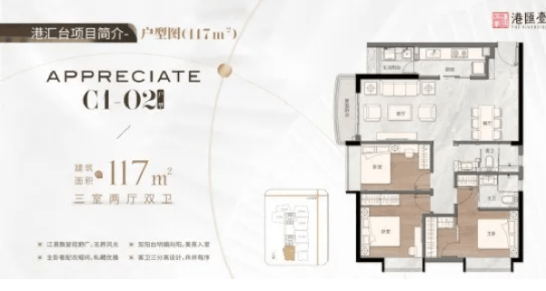 C1栋作为港汇台的重要组成部分,采用了2梯3户的设计,总高20层(实际住宅楼层),这种配置在保证私密性的同时,也兼顾了出行的便利性。每层仅三户人家,减少了邻里间的干扰,提升了居住的舒适度。