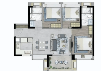 124㎡3+1 房 2 厅 2 卫:同属 348-368 万总价区间,是项目的改善主力户型。更大的建筑面积带来更阔绰的空间尺度,客厅与餐厅形成大横厅布局,待客、家庭互动空间充足,阳台长度延伸至次卧,采光面更广。四个房间分布合理,每个房间都能保证足够的居住空间,避免 “小房间鸡肋” 的问题,同时双卫浴、独立玄关等设计,进一步提升居住的便利性与品质感,适合追求舒适生活的改善群体。