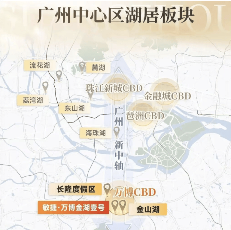 项目坐落于广州市番禺区市广路与金山大道交汇处,地处万博CBD核心区与金山湖文化公园生态带交汇点。根据《广州市重点商业功能区发展规划》(2023年7月印发),万博CBD与珠江新城、琶洲CBD并列广州五大“世界级地标商圈”,目前已聚集超2.8万家企业,包括希音、广汽埃安等全球独角兽,2025年税收突破200亿元,就业人口超18万。项目直线距离金山湖仅200米,独享无遮挡湖景视野;金山湖文化公园占地108.7万平方米,相当于2.5个天河公园,未来规划林荫绿道直达小区门口,业主步行5分钟即可享受晨跑、垂钓、亲子游乐等户外活动。