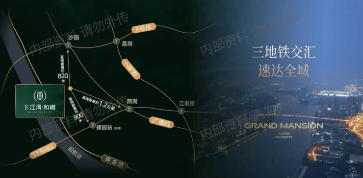 项目的交通优势十分突出,周边拥有 “三地铁 + 一条环岛路” 的立体交通网络。距离 8 号线沙园地铁站约 800 米,步行 10 分钟左右即可到达,8 号线向西可直达荔湾陈家祠、滘心,向东能换乘 3 号线到天河体育西路,无论是上班通勤还是周末出游都很方便;距离广佛线燕岗地铁站约 1.2 公里,乘坐广佛线可快速抵达佛山南海,适合在广佛两地往返的购房者;在建的 11 号线(首条环城地铁)棣园站距离项目约 900 米,未来 11 号线开通后,无需换乘就能到达天河、白云、越秀等区域,进一步缩短通勤时间。