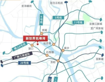新世界·凯粤湾距离地铁5号线首发站窖口站约500米,步行几分钟即可到达,无需换乘直达珠江新城。此外,6号线坦尾站和规划中的11号线石围塘站也近在咫尺,未来还将有4条地铁线路交汇于白鹅潭站,进一步提升区域的交通枢纽地位。