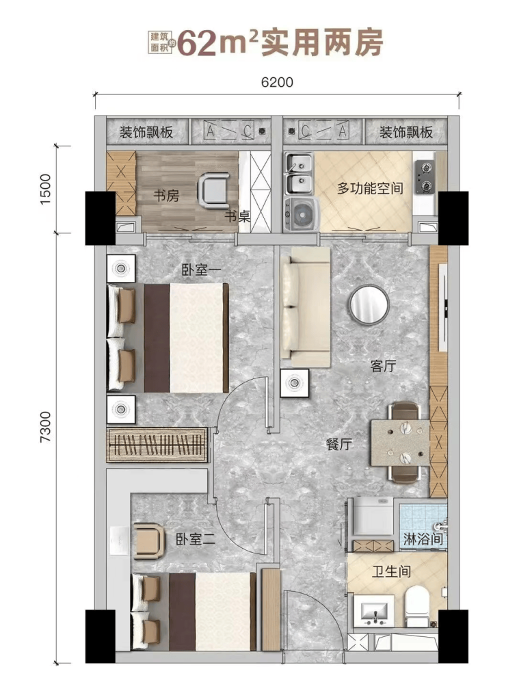 四、户型解析:31-99㎡高使用率明火户型,外阳台+3.15米层高提升居住幸福感