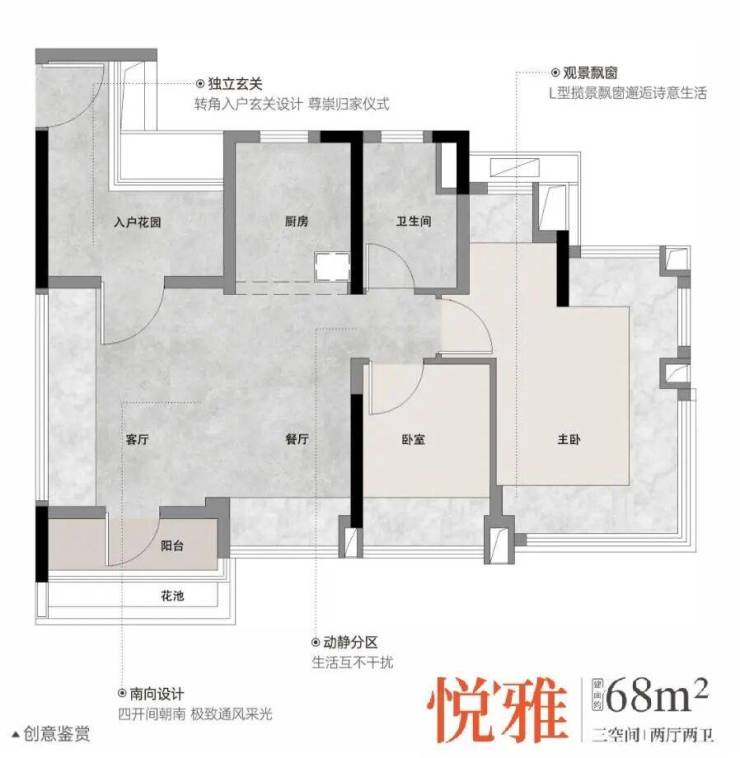 项目各户型使用率均超100%,这一数据在实地探访的样板间中得到充分印证。建面68平方米三房两厅两卫户型赠送面积达18-19平方米,主卧配备独立卫生间与L型飘窗,既保证了私密感,又拓展了实用空间,满足小家庭的居住需求。建面98平方米四房户型则拥有约6米长的景观阳台,搭配全南向布局,最大化吸纳阳光与通风,同时通过多飘窗设计进一步提升空间利用率。所有户型均采用转角玄关与独立门厅设计,规避门对门尴尬,贴合广州人对归家仪式感的讲究,走廊净宽的升级也让日常通行更显从容。