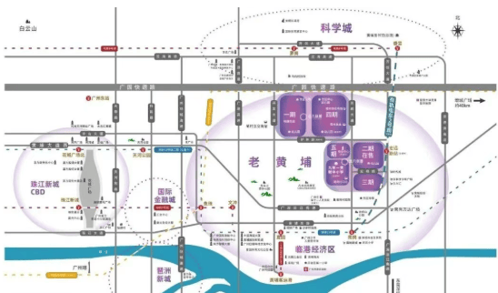 富力新城位于黄埔临港经济区,紧邻科学城板块的核心交汇处。项目地处黄埔大道和广园快速之间,地理位置优越,交通便捷。周边拥有丰富的公共交通资源,包括笔村公交站无缝对接地铁13号线和6号线,以及未来有轨电车2号线宏远路站的开通将进一步提升交通便利性。此外,自驾出行也非常方便,通过黄埔大道和广园快速路,约30分钟可达珠江新城、20分钟直达金融城、10分钟抵达鱼珠CBD,真正融入广州主城区半小时生活圈。