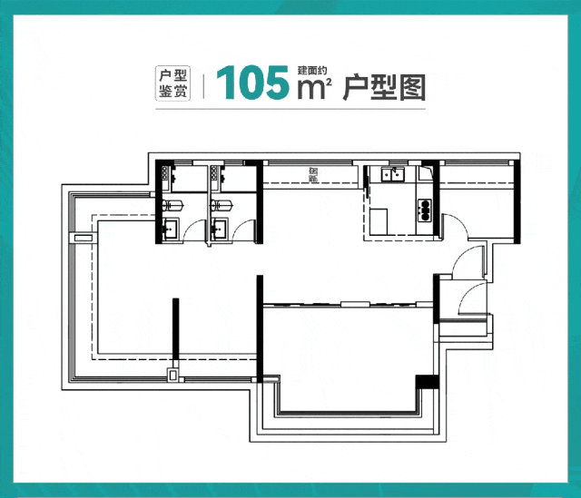 100㎡三房:实得面积≈125㎡(无狭长过道)