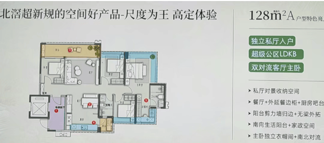 第二款户型是128㎡A户型,该户型主打“舒适改善”,适合有一定居住品质追求的家庭,独立电梯厅入户的设计,是该户型的一大亮点。独立电梯厅入户,不仅提升了业主的尊贵感与私密性,避免了与其他业主共用电梯厅的尴尬,同时也能利用电梯厅的空间,打造专属的收纳区域,存放鞋子、杂物等物品,进一步提升空间利用率。电梯厅直接入户,让业主的归家之路更加便捷、高效,告别等待电梯的烦恼,享受专属的归家仪式感。