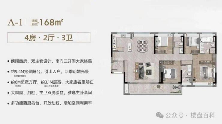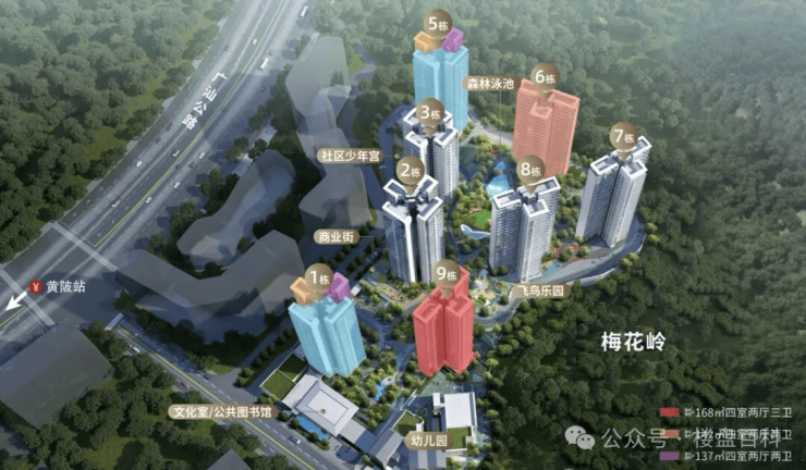 户型区间:建面约 97-168 平方米,涵盖 3-4 房,主打南向巨幕山景四房,适配刚需及改善多元需求