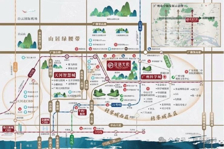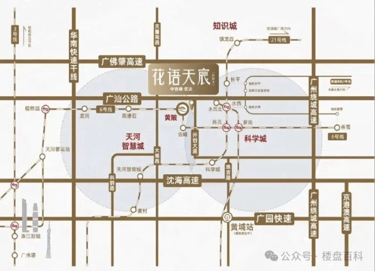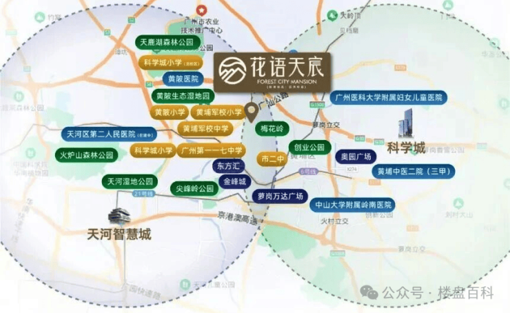 中铁建信达花语天宸精准落位广州市黄埔科学城与天河智慧城双城交汇核心板块,是两大科技城之间唯一的资源聚合板块,坐落于广州科技创新轴(第三中轴)与主城山居 “绿腰带” 黄金交汇处,双重区位红利叠加,占位广州未来 10 年发展头等舱。