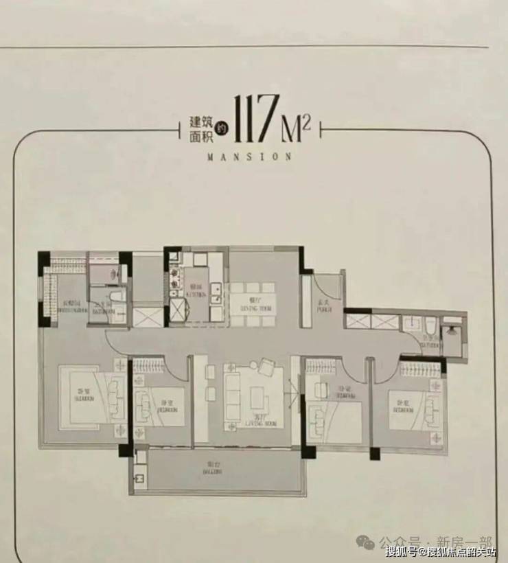 117㎡板楼五房:2梯2户,专梯专户,5开间朝南,奢享豪华大平层,层高3米,居住舒适度拉满。