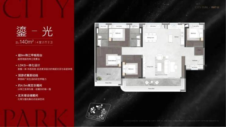 LDKS一体化、大宽厅/甲板阳台,国企中铁建开发,立面与园林质感强