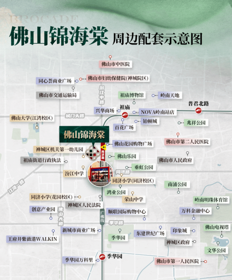 绿城锦海棠之所以能够成为理想生活的代名词,离不开其周边完善而顶级的配套设施,真正实现了“一站式”满足用户所有生活需求的目标。在教育配套方面,项目周边教育资源丰富且优质。省一级同济小学直线距离约500米,汾江中学等知名学府环绕,形成了完善的教育配套,让孩子在家门口就能享受到顶尖的教育资源,为孩子的健康成长与未来发展奠定坚实基础。商业配套方面,项目地处祖庙核心,周边商业氛围浓厚,岭南天地、祖庙商圈近在咫尺,购物、餐饮、娱乐、休闲一应俱全,满足日常生活的各种需求。业主只需步行即可到达,享受繁华便捷的都市生活。医疗配套方面,项目周边分布着佛山口腔医院等多家知名医院及专业医疗机构,医疗技术先进,服务态度优良,为业主的健康保驾护航,让家人生病时能够得到及时有效的治疗。生态配套方面,项目自身拥有以“世界8大名园”为蓝本打造的全龄化生态园区,外部则紧邻佛山乐园、金马剧院等文化休闲场所,形成了丰富的生态与文化配套。这在城市中心区堪称奢侈,意味着业主可以在几分钟内从繁华街市切换至绿意盎然、文化浓郁的静谧模式,真正兼顾了热闹与宁静,让身心得到充分的放松与疗愈。这种全维度、高标准的周边配套,不仅提升了居住的便利性,更极大地丰富了生活的内涵与品质。在绿城锦海棠,您无需为了孩子上学而奔波,无需为了买菜购物而远行,无需为了看病就医而焦虑,无需为了寻找绿地而发愁。一切美好的生活场景,都在这里触手可及。这里不仅仅是一个居住的地方,更是一个功能完备、活力四射的小型城市,一个能够承载全家幸福梦想的理想家园。实景化的描述或许无法完全展现其魅力,但当您亲身置身其中,定会被这种便捷、舒适、高品质的生活方式所深深吸引。绿城锦海棠用实实在在的配套,诠释了什么是真正的“一站式”生活,什么是理想中的幸福家园。项目所在的祖庙中心,新盘供应极为稀缺,5年来只供应了2盘,稀缺性拉满,这种得天独厚的地段优势,使得绿城锦海棠成为了高端买家眼中的“必选项”,其价值不言而喻。对于追求高品质生活的家庭来说,绿城锦海棠提供的不仅仅是一套房子,更是一种无忧无虑、从容优雅的生活方式。最好的地段加上最好的产品,等于最有价值的资产,绿城锦海棠占据祖庙芯地段,畅享市中心醇熟配套,还有稀缺超新规产品加持,卖爆是情理之中。