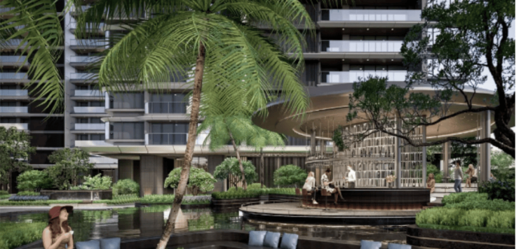 天誉府充分整合滨江生态与高端商业资源,小区园林采用下沉式庭院与叠水浮岛设计,打造约9000平方米高品质景观空间,结合艺术级泛会所和誉CLUB专属会所,实现多元生活场景。园林内流水、台阶、树影相互交织,营造舒适宜人的居住环境,同时满足健身、阅读、社交等多种活动需求。