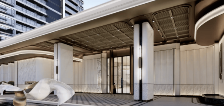 天誉府充分整合优质资源,打造头排江景豪宅。项目以岭南文化与星级酒店式设计相融合,外立面采用圆弧语言,门庭高达70米,配备酒店式归家双大堂,与迎宾水景相映成趣,形成珠水浩瀚之感。小区园林面积约9000平方米,采用叠水浮岛设计,并搭配四大无界泛会所及专属会所,为业主提供丰富的社交、健身和阅读等生活场景,实现豪宅不仅有江景,更有温度的生活体验。