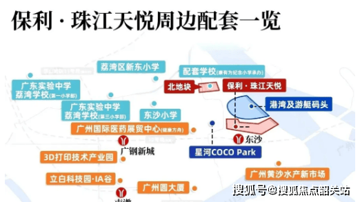 商业配套方面,项目背靠千亿级广州国际健康港(总投资超 300 亿元,体量约 200 万㎡),一期健康方舟已运营,12 万㎡健康港星河 COCOPark 已开业(含星巴克、奈雪的茶、影院等);周边规划内港湾码头滨水商业街、广钢花湾天地、广船综合体,未来还有万象城、滨江太古商业等顶级配套。医疗资源顶尖,3 公里内有广东省中医院芳村分院、广州中医药大学第三附属医院、广钢新城医院等三甲医院,为健康保驾护航。