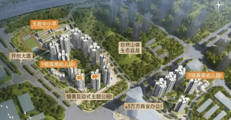 优质生活环境:项目被两座山体环绕,靠近创新公园,提供了宜人的生态环境。