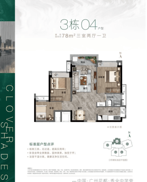 78㎡三房:紧凑但功能齐全,适合年轻夫妻或三口之家,南北通透,客厅连阳台;