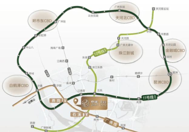 中建天钰位于石溪站(广佛线&10号线)和燕岗站(广佛线&10号线)之间,步行至两个地铁站的距离分别为750米和900米。便捷的地铁网络使得通勤变得轻松自如,4站可达上涌,8站直达琶洲,9站直达天河,30分钟内即可抵达广州核心区域。