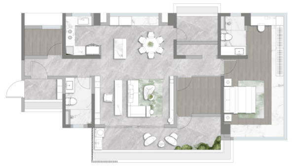 约7m大平层级阳台,约23m²奢阔主卧 私享独立衣帽间