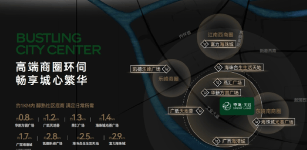 依靠工业大道,中建天钰无缝直享乐峰广场、江南西商圈等成熟生活配套。项目位于琶洲-新滘路豪宅线起点,占据得天独厚的地理位置,10分钟车程即可到达多个繁华商圈,享受一站式购物体验。