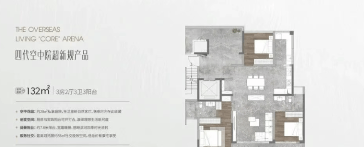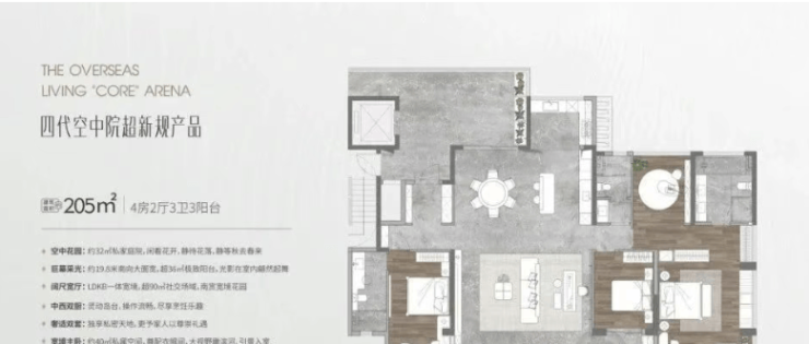 空间亮点:L形大开间无界宽厅连接南向超大阳台,6米挑高露台可打造空中花园;