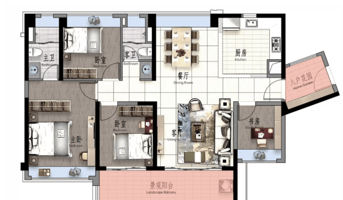 终极改善:196㎡大平层,双套房设计,三代同堂更从容;