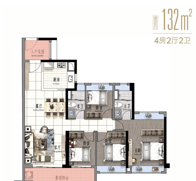刚改优选:132–142㎡四房,四开间朝南,LDK一体化,主卧带270°飘窗;