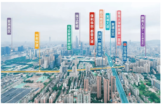 都荟天珺位于华南快速与黄埔大道交汇处,西侧紧邻珠江新城东区,东侧为金融城核心区,南侧隔江对望琶洲西区,身处三大 CBD 辐射圈,自驾 10 分钟可覆盖核心区大部分目的地。交通方面,在建的地铁 13 号线二期白马岗站就在楼下(预计 2025 年底通车),步行 5 分钟可达;周边还有地铁 5 号线、21 号线,多线路换乘便捷。周边配套成熟,3 公里内有正佳广场、天河城、太古汇等商业体,华侨医院、中山三院等三甲医院环伺,直线 1 公里到天河公园,生活、医疗、休闲需求全满足。